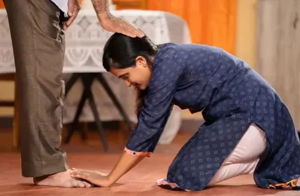Есть в Индии древняя традиция – прикасаться к ногам старших людей, обычно уже в глубоком возрасте, вот настолько старших. Так делают практически в каждой индуисткой семье, даже очень современной, и даже если она живет далеко за пределами страны. Вот как глубоко проникла традиция в обычный быт.