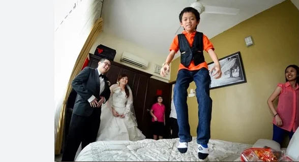 А поскольку в Китае культ академической успеваемости и титулов, иногда приглашают уже взрослого студента очень престижного вуза. Из зафиксированных случаев: на юге Китая 26-летний аспирант катался по кровати на свадьбе своей старшей сестры. Невеста объяснила, что таким образом желает своим будущим детям таких же успехов в учебе, как у их дяди. Креативно, нечего сказать!