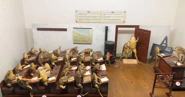 Самый странный музей Европы, где представлены диорамы с чучелами лягушек (5 фото + 1 видео)