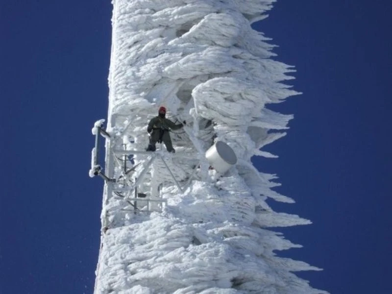 2. Вышка выглядит ожившей благодаря сильнейшей метели