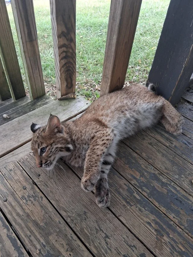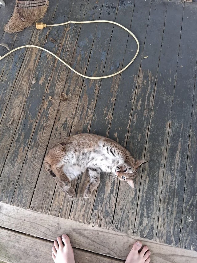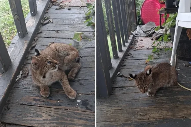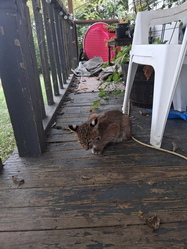 Мужчина обнаружил на крыльце своего дома детёныша рыси (8 фото)