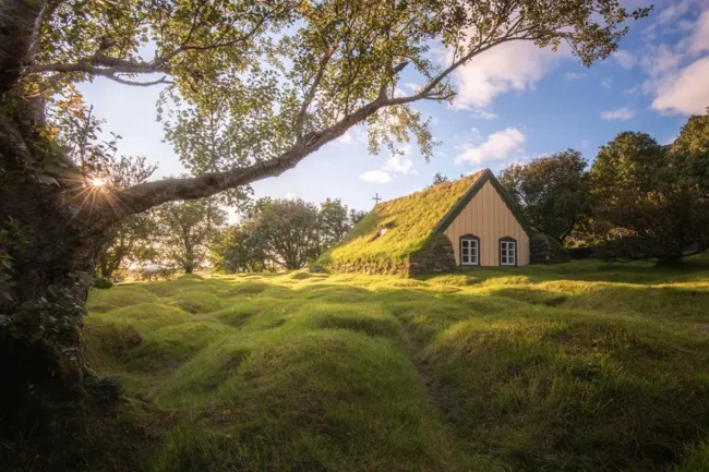 13. Хофскиркья - 130-летняя церковь в Исландии с крышей из дерна