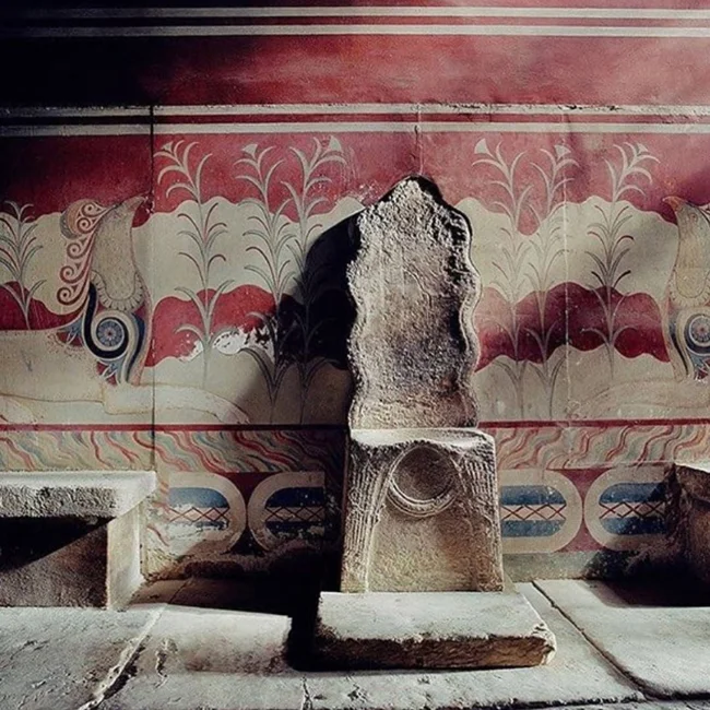 10. Старейший тронный зал в Европе в сердце минойского дворца бронзового века в Кноссе, Крит, 15 век до нашей эры