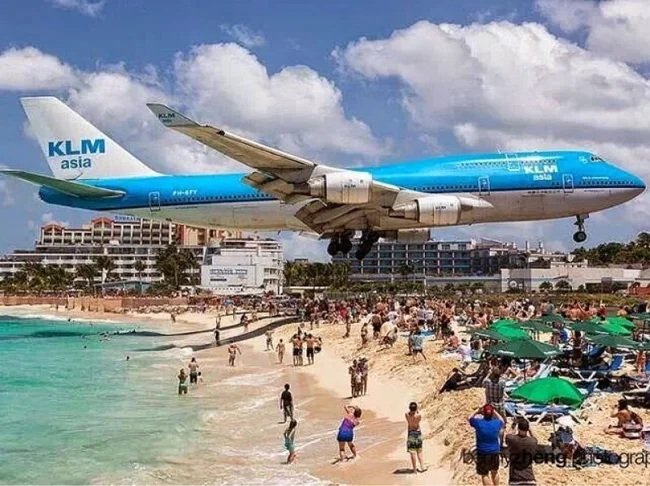 5. Пляж Махо на острове Сен-Мартен известен низколетящими авиалайнерами, которые пролетают так низко над пляжем, что людей может сбросить в воду из-за реактивной струи