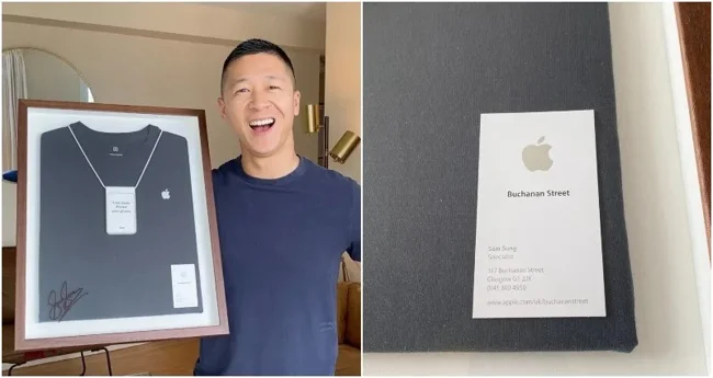 Все началось довольно невинно. Сэм Санг устроился на работу в магазин Apple. Он просто выполнял свои обязанности, пока в один прекрасный день один из посетителей не заметил его бейдж. Сочетание слов «Apple» и «Sam Sung» на униформе сотрудника показалось ему настолько забавным, что он немедленно сделал фотографию.