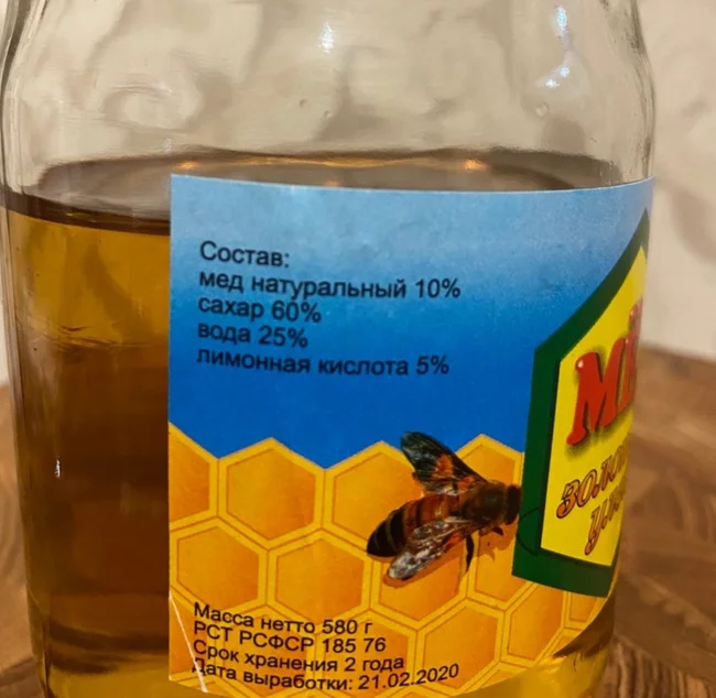 Вы только приглядитесь к составу! Всегда внимательно читайте его, покупая мед!