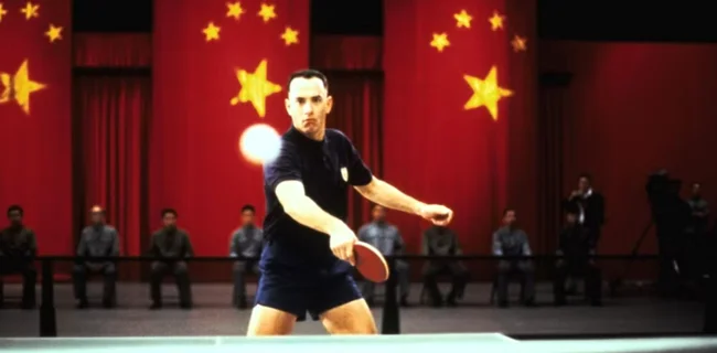 Одной из самых неожиданных глав в жизни Форреста становится его карьера профессионального игрока в настольный теннис. Но есть в этой сцене одна странная деталь: Форрест буквально не моргает во время матчей. Его взгляд прикован к мячу с такой концентрацией, что это начинает казаться почти сверхъестественным.