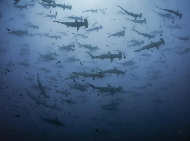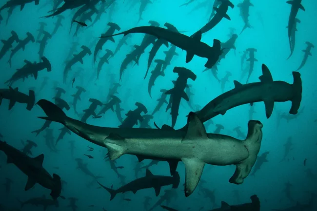 Само собой, чтобы обрабатывать всю эту кучу информации от сенсорных органов, рыбинам нужен большой мозг. Думалка молота больше, чем у большинства обычных акул. Возможно, именно поэтому рыбы организуют те самые загадочные сборища, о которых мы говорили в начале. Массовые скопления можно встретить у берегов Мексики, Австралии, у Галапагосских, Каймановых островов и Фиджи. Места собраний, как правило, одни и те же, но определённой систематики в поведении акул нет. В каких-то районах они собираются раз в месяц по лунному календарю, в других же раз в несколько месяцев или даже раз в год. Длительность собраний тоже разная: от 30 минут до нескольких часов — даже тут последовательности нет.