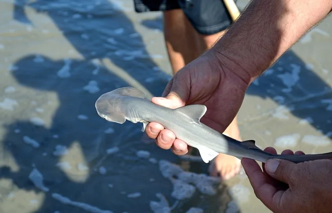 Среди акул-молотов есть вид, который выбрал быть другим инструментом. Это акула-лопата. Её голова уже и выгнута полумесяцем.