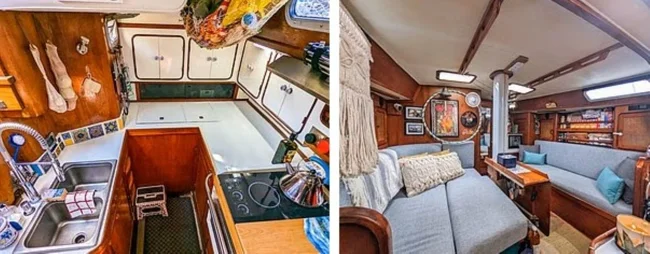 Лия и Кайл живут на 13-метровом судне стоимостью 78 000 долларов вместе с тремя питомцами.