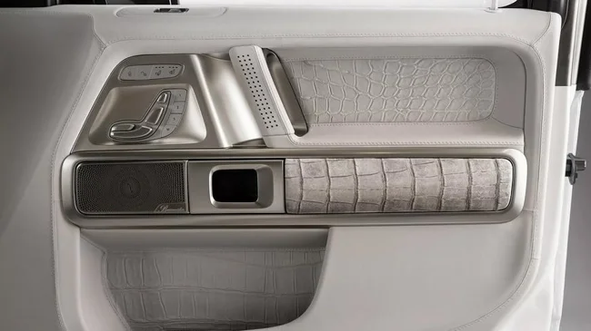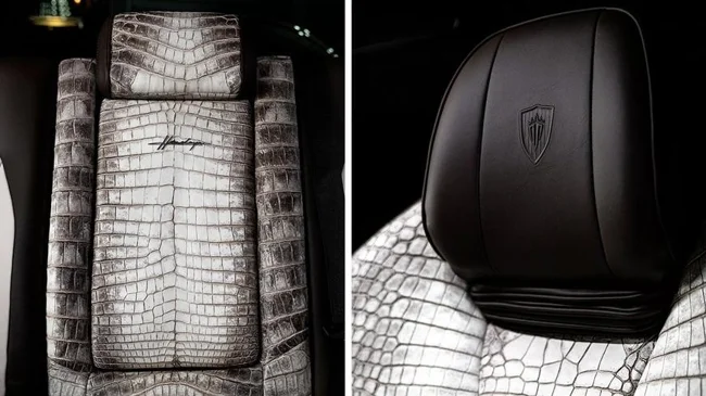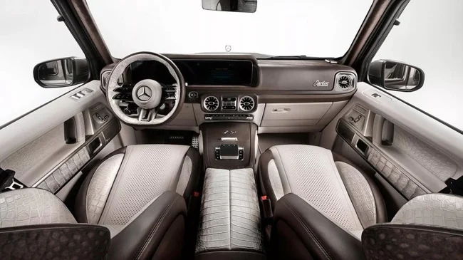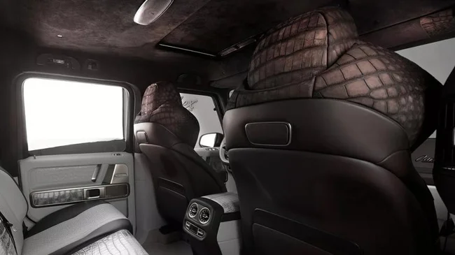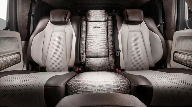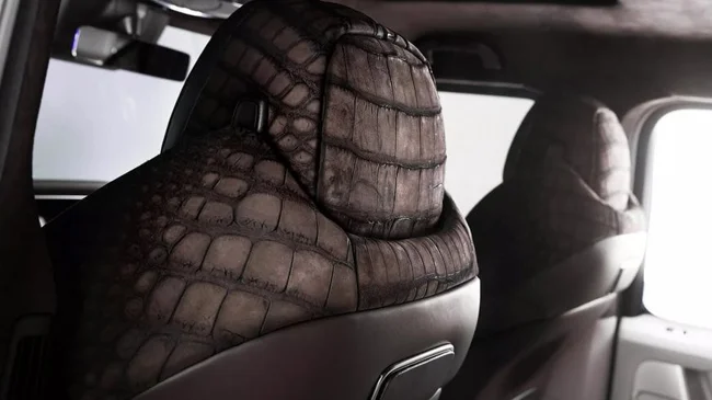 Для отделки салона ателье Carlex Design использовало кожу особого отбора и выделки, сопоставимую по качеству с теми материалами, из которых изготавливаются самые дорогие аксессуары. Некоторые поверхности интерьера внедорожника обтянуты кожей крокодила.