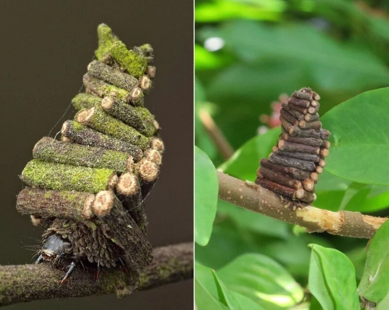 4. Гусеница-мешочница, которая строит на себе кокон в виде чехла и таскает его на спине весь свой жизненный цикл