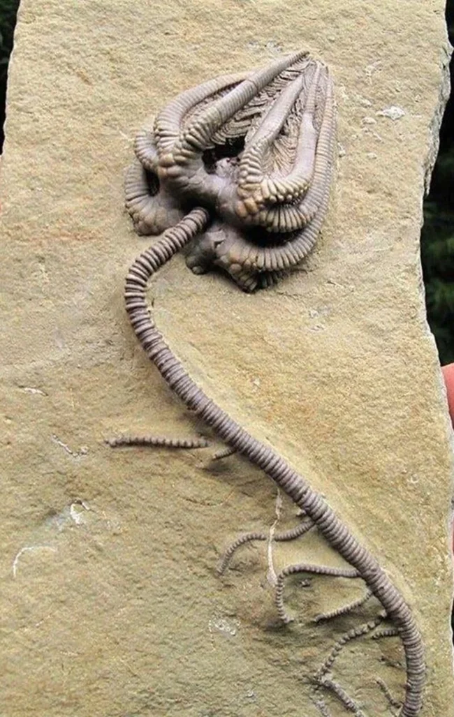 19. Окаменелость морской лилии (криноидеи) возрастом почти 345 миллионов лет