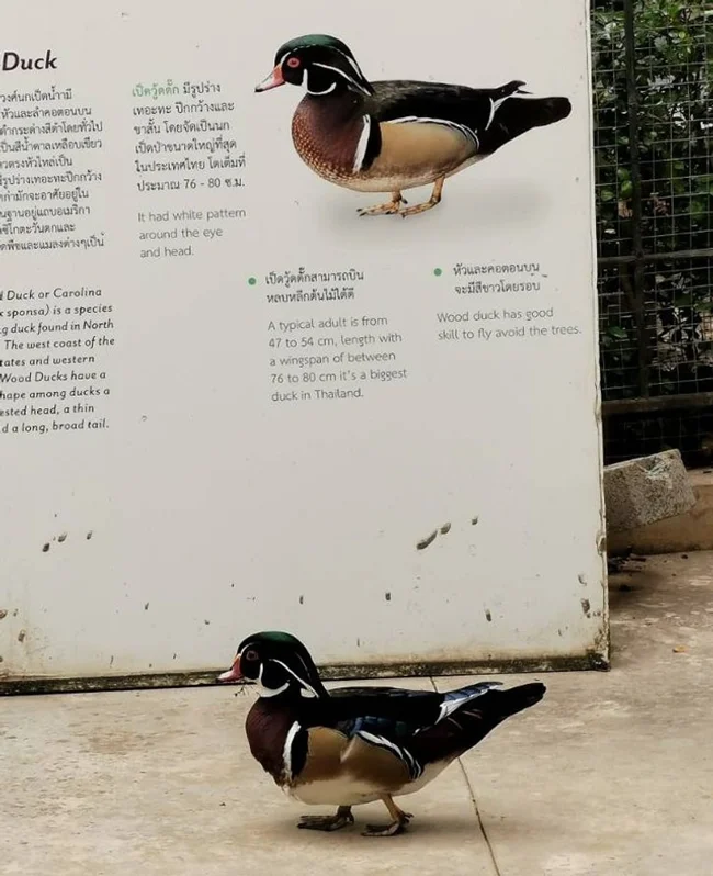 1. Каковы шансы, что дикая каролинская утка гордо прошествует мимо собственного знака в зоопарке?