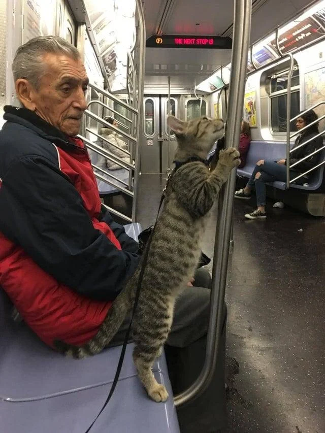 Кот Рико в поезде Нью-Йорка