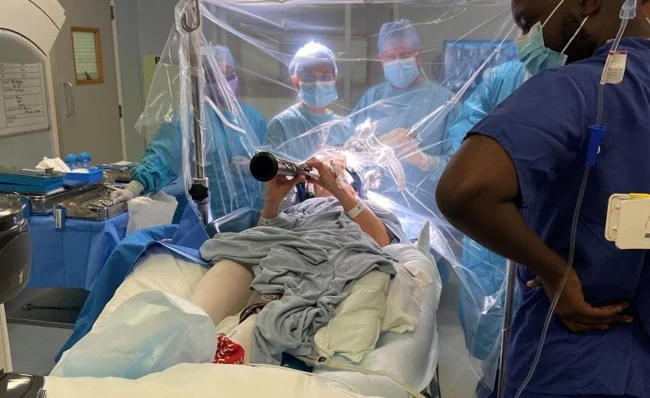 Пациентка играла на кларнете во время четырёхчасовой операции на головном мозге (3 фото + 1 видео)