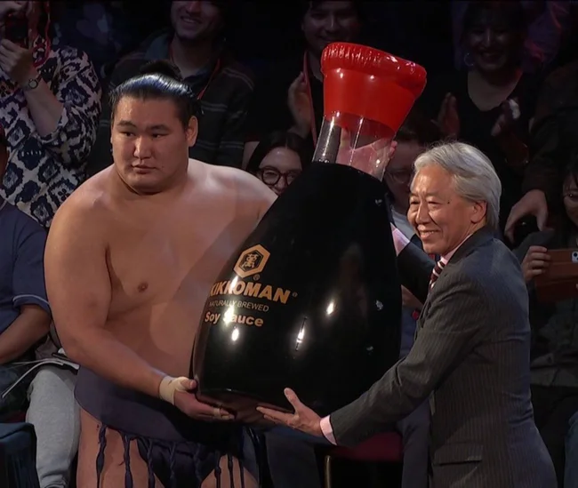 А победителю всего турнира, Хосёрю, вручили огромную игрушку Hello Kitty и гигантскую бутылку соевого соуса.