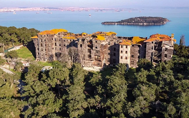 На вершине холма острова Бююкада, что у побережья Стамбула, замер потрясающий великан.