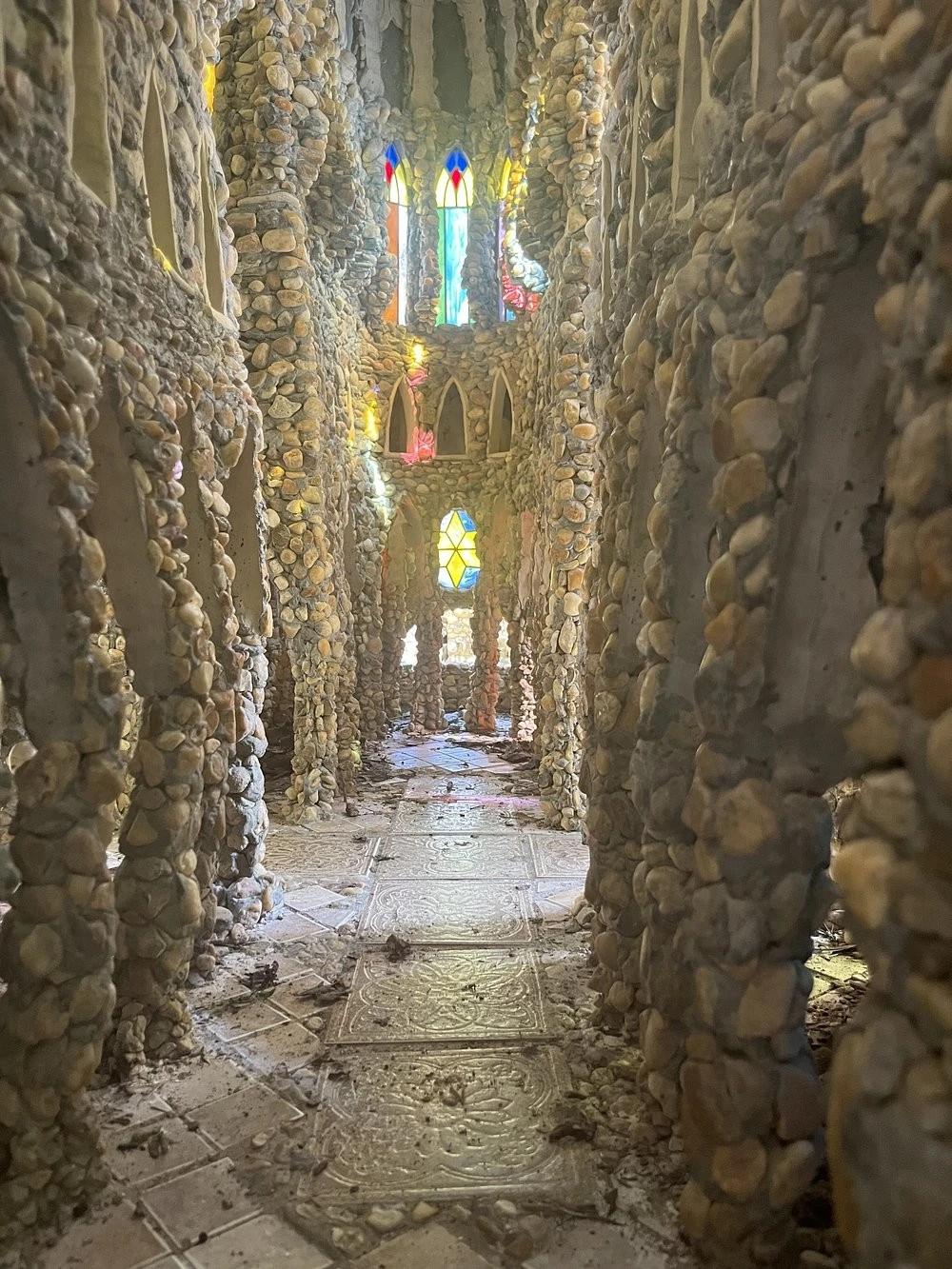 Более 50 крошечных строений, формирующих сад, кропотливо сложены из мелких камушков, ракушек, осколков стекла, проволоки, цемента и других подручных материалов. Прогулка по саду переносит гостей от парижского собора Нотр-Дам с его витражами из цветного стекла до величественных замков, возведённых из гальки и раковин. Интерьеры и закоулки этих сооружений населяют фарфоровые человечки, а по всему ландшафту расставлены небольшие фигурки животных из фарфора.