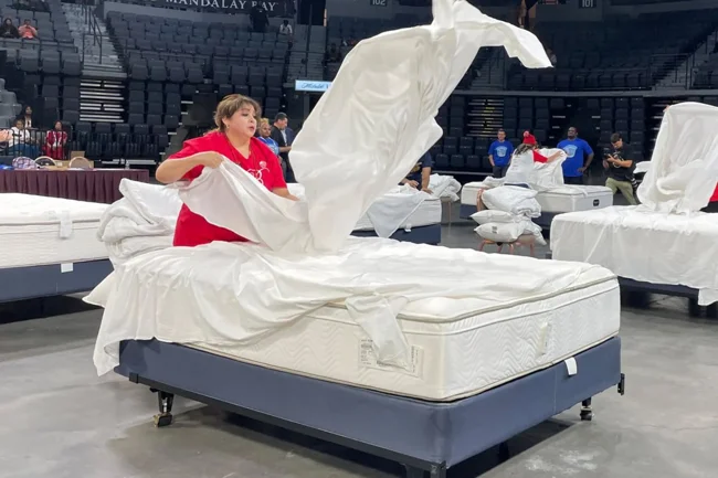 Участники выясняют, кто быстрее и лучше сможет заправить кровать, пропылесосить и вымыть полы. Сотни человек борются за трофей и несколько тысяч долларов призовых.