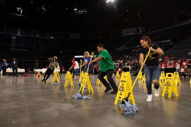Перед вами кадры с «Олимпиады Чистоты» в США, на которой команды демонстрируют свои профессиональные навыки, скорость и мастерство в уборке.