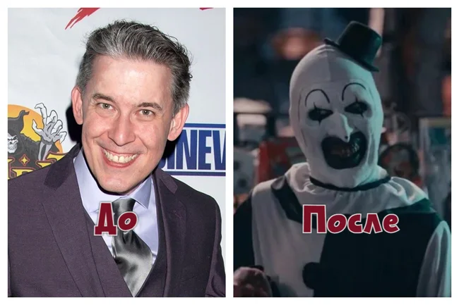 Как это часто бывает с исполнителями ролей злодеев из жанра хоррор, Дэвида Ховарда Торнтона практически невозможно узнать вне образа клоуна Арта из киносерии "Ужасающий".