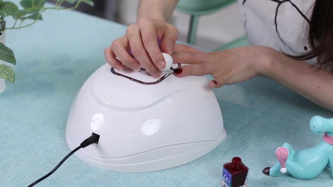 Главная при сушке базы — не перегревать ноготь. Если слой слишком толстый, под лампой может ощущаться жжение. Чтобы этого избежать, базу наносят дважды, просушивая каждый раз отдельно.