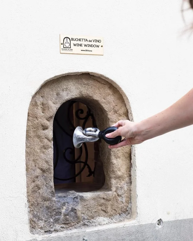 Они проделали в стенах небольшие окошки, выходившие на улицу примерно на уровне пояса пешехода. Эти окна вели прямо в подвал, где хранилось вино. Клиенты приносили свой собственный кувшин, бутылку или стакан, просовывали его в окошко, где ёмкость наполняли, происходил обмен, и сделка завершалась. Эти окна стали известны как «винные окошки» или «букетте дель вино».