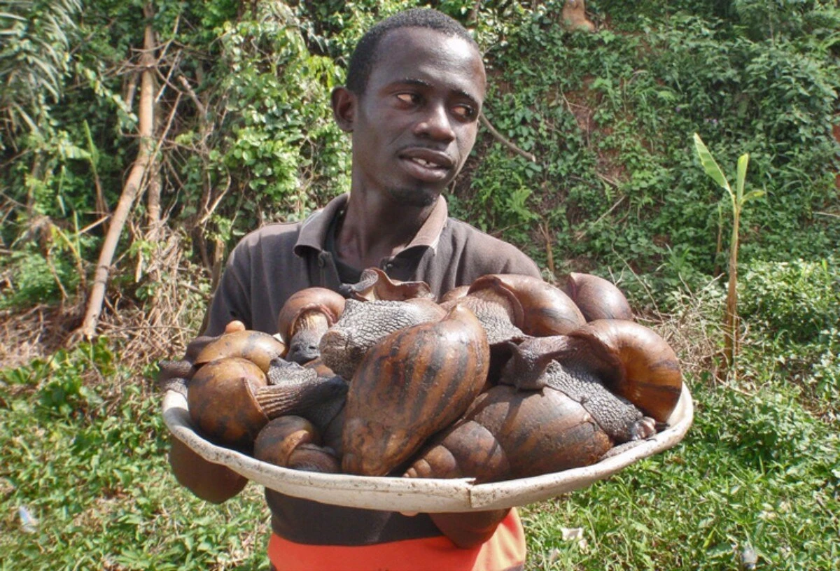 К слову, на родине ахатин, в Восточной и Южной Африке, их спокойно собирают и едят. Ещё бы, почти килограмм свежего мяса ползает по земле.