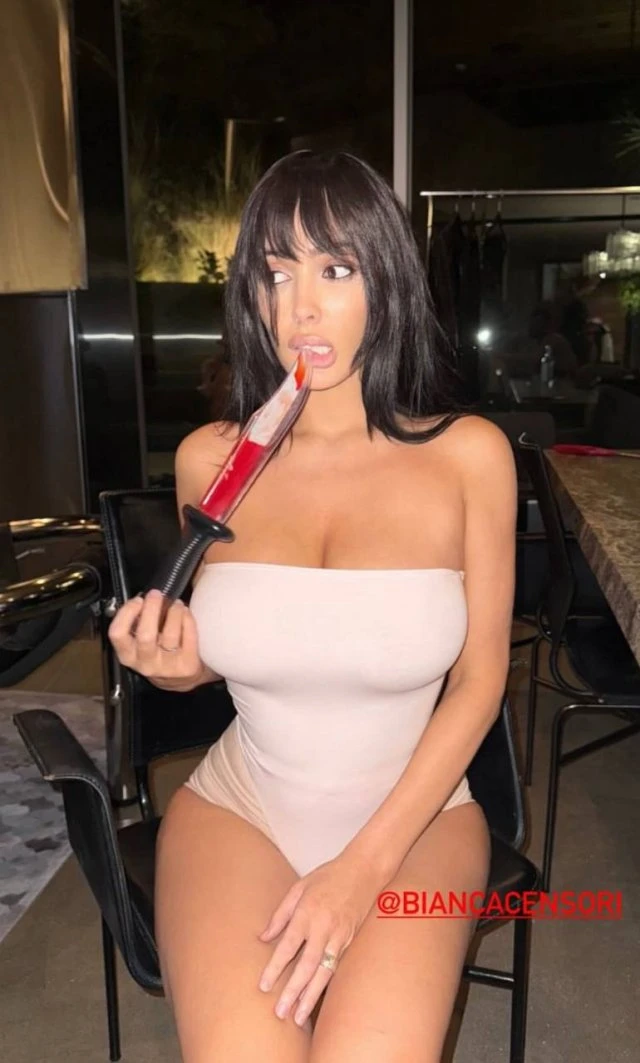 Мы привыкли видеть Бьянку Цензори больше раздетой, чем одетой. Но тут, говорят, девушка отправилась на встречу к родителям, поэтому пришлось выглядеть скромнее. Ну по ее меркам скромнее.
