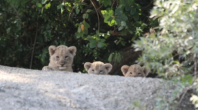 В отсутствии матерей львы прячутся где-то в кустиках и изо всех сил глушат естественное детское любопытство.
