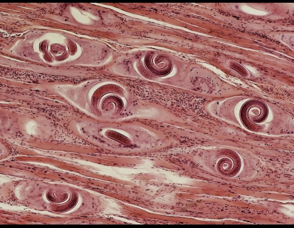 Вот эти красивые рогалики и есть трихинеллы в волокнах мяса.