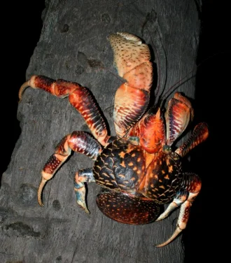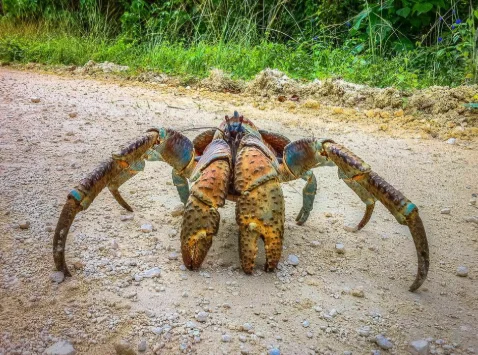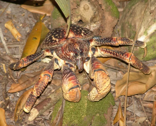 Кокосовый краб или Пальмовый вор считается одним из самых опасных крабов на Земле не только из-за своего размера (может вырастать вплоть до 90 см), но и из-за силы своей хватки, которой достаточно чтобы раздавить кокос.