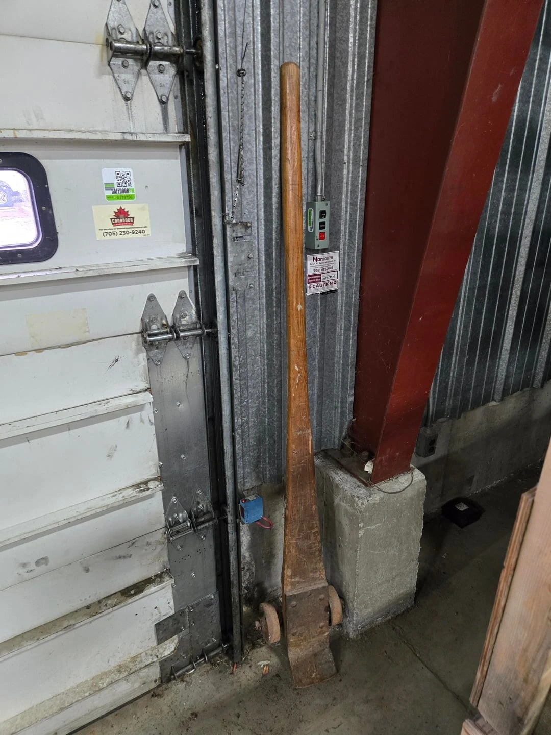 7. Длинная деревянная ручка с металлической пластиной и колёсами на конце