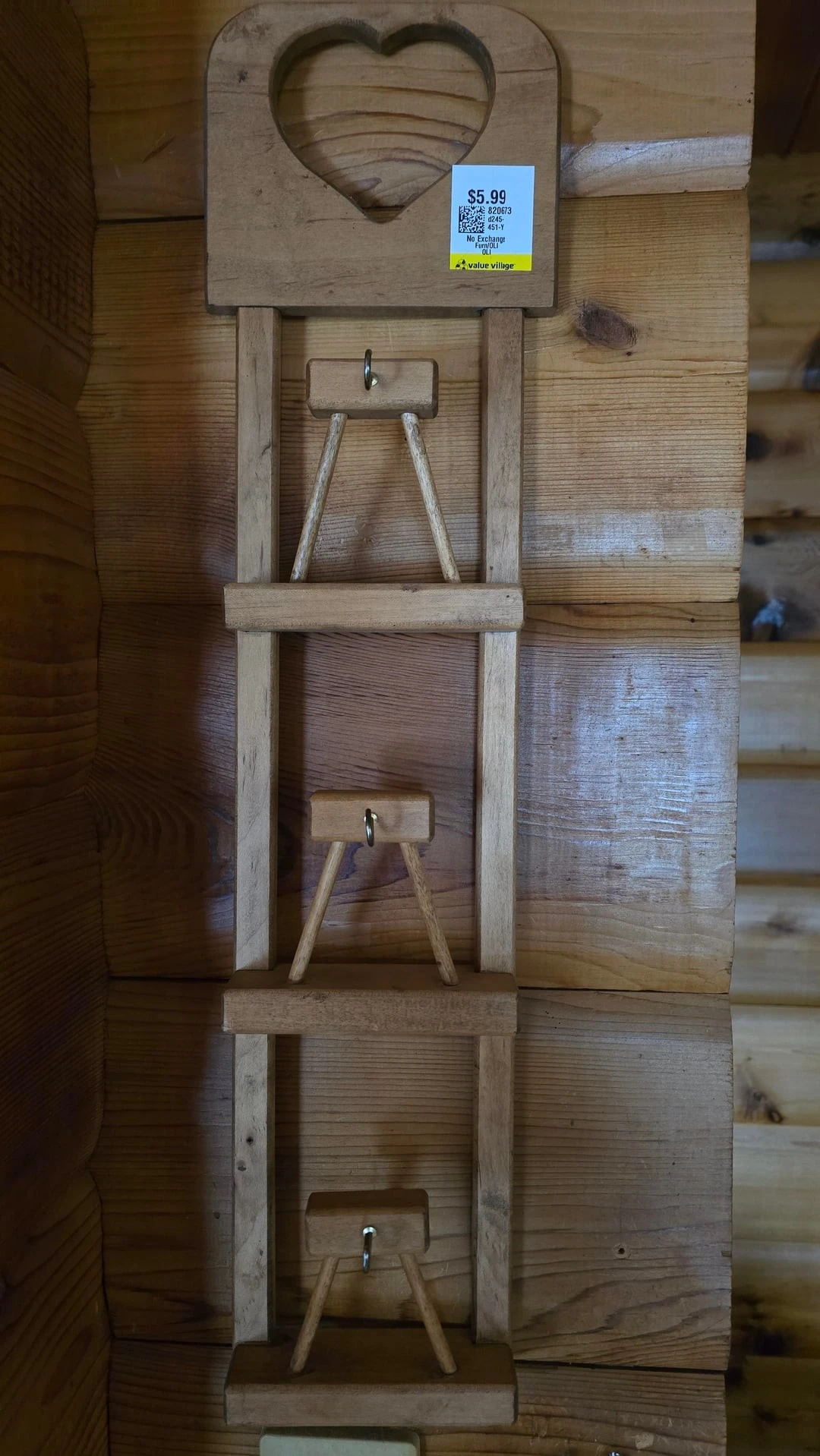 10. Деревянная подвесная полка с вырезом в форме сердца с тремя маленькими металлическими крючками