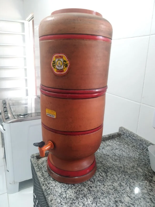 Глиняный фильтр для воды, который очень популярен в Бразилии. Керамический фильтр для воды — это простое и эффективное решение для её очистки. Задерживает грязь и другие механические примеси. Для борьбы с микробами поверхность фильтра часто покрывают серебром.