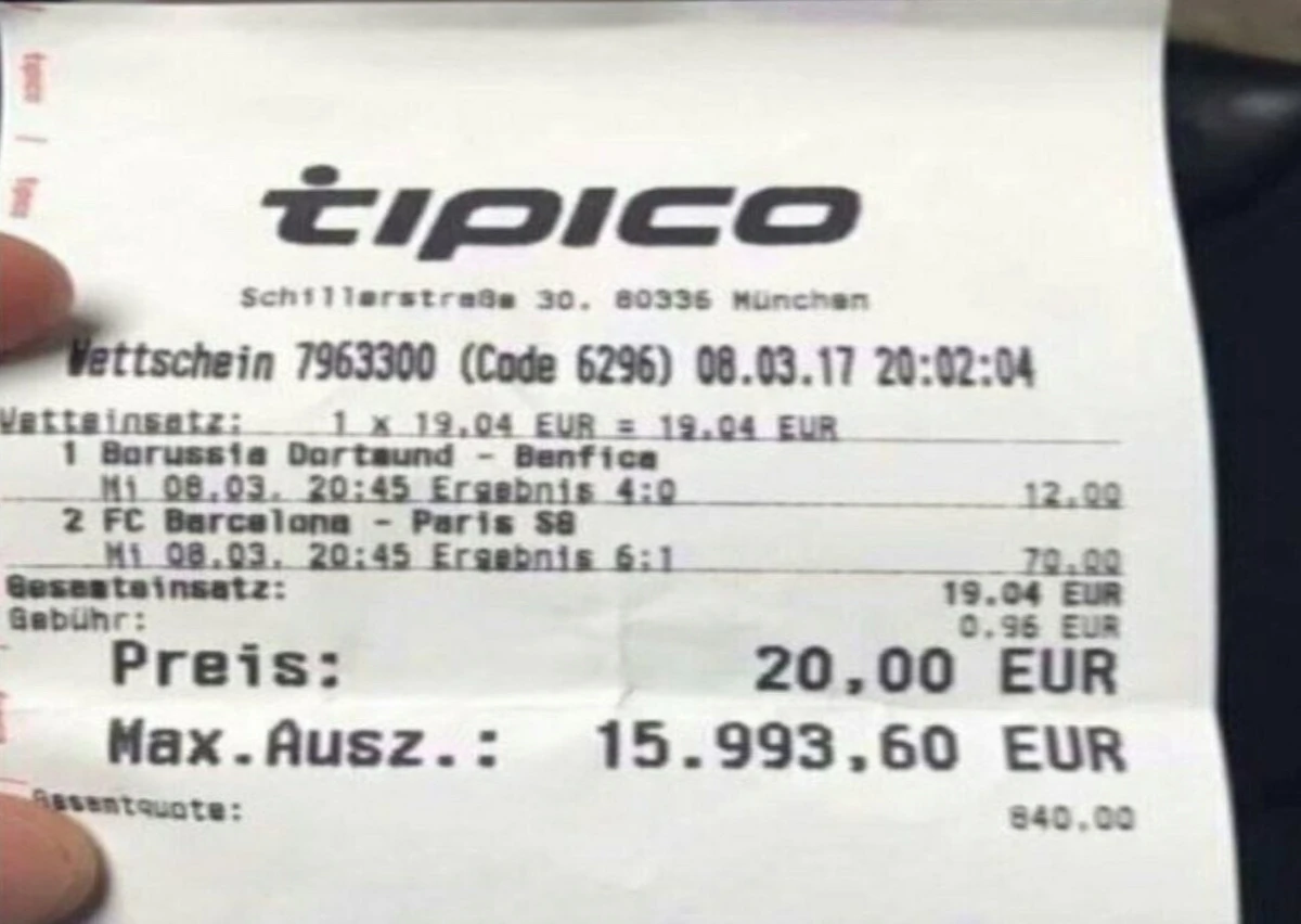 Фанату явно повезло: поставив двадцать долларов, он выиграл около шестнадцати тысяч, точно угадав итог матча