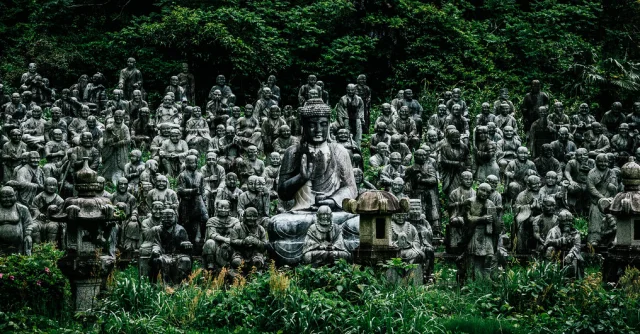 В небольшой деревне японской префектуры Тояма в 1989 году местный бизнесмен Муцуо Фурукава вложил около 44 миллионов фунтов стерлингов в создание парка Fureai Sekibutsu no Sato — «Деревни, где можно встретить каменные статуи». Он заказал у китайского скульптора около 800 реалистичных фигур: буддийских божеств, портретов друзей, семьи и даже самого себя, чтобы сохранить их навечно.