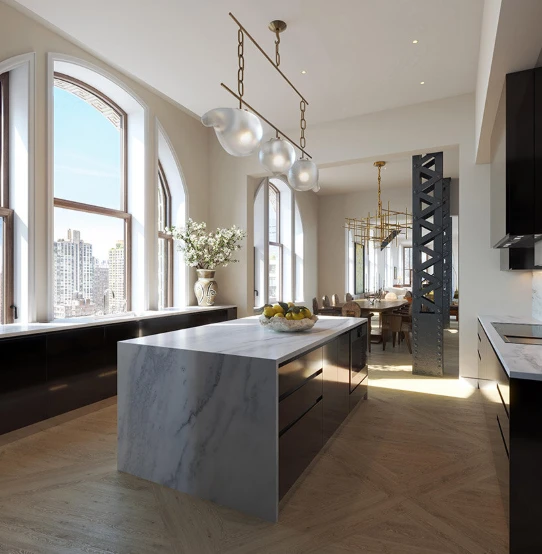 Легендарное здание Flatiron в Нью-Йорке было преобразовано из офисного в жилое, ныне в нем расположены 38 резиденций. За дизайн интерьеров отвечало бюро Studio Sofield. В ходе реконструкции дом, который ранее служил офисами, был приспособлен для жилья с сохранением множества исторических элементов, включая перила. По информации The New York Times, цены на апартаменты варьируются от 11 миллионов долларов до 50 миллионов долларов.