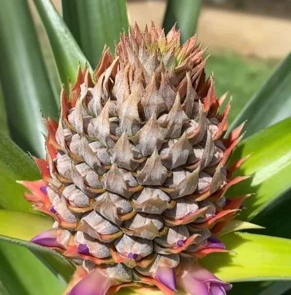 В течение года он ухаживал за растением, менял почву и оно стало высотой в 40 сантиметров. Вторая зима не прошла без проблем - растение начало шататься, но опора спасла ситуацию. На третий год жизни ананас начал цвести.