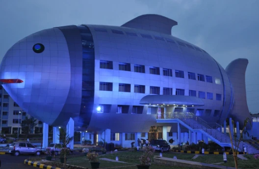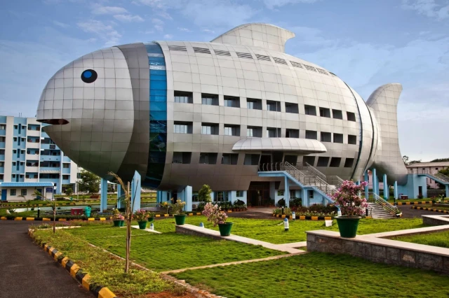 Здание в форме рыбы, получившее неоффицальное название «Fish Building», служит региональным офисом Национального совета по развитию рыболовства и находится недалеко от Хайдарабада, Индия. Четырехэтажное сооружение было официально открыто в апреле 2012 года и, согласно сообщению, было вдохновлено монументальной скульптурой «Рыба» Фрэнка Гери в Барселоне, завершенной в 1992 году. Здание облицовано панелями из нержавеющей стали и, за исключением центрального ядра, полностью поднято с земли на светло-голубом пилоне. В ночное время его освещают сине-фиолетовые прожекторы, создавая эффект гигантской рыбы, словно плавающей через Хайдарабад.