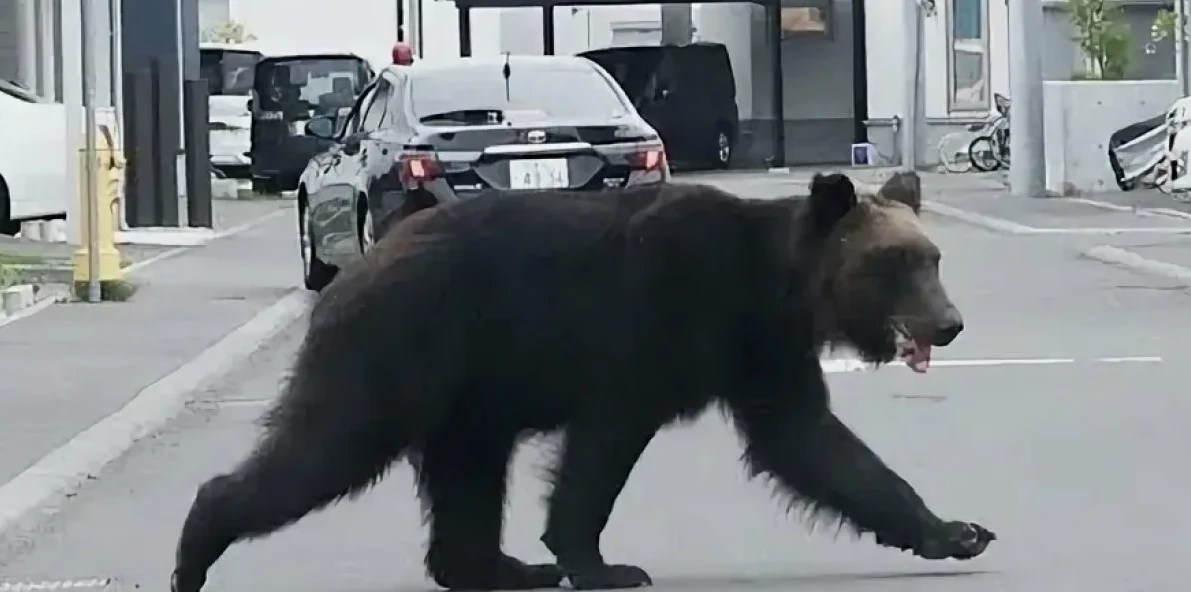 Медведь гуляет по улицам японского городка. У полиции нет оружия против него