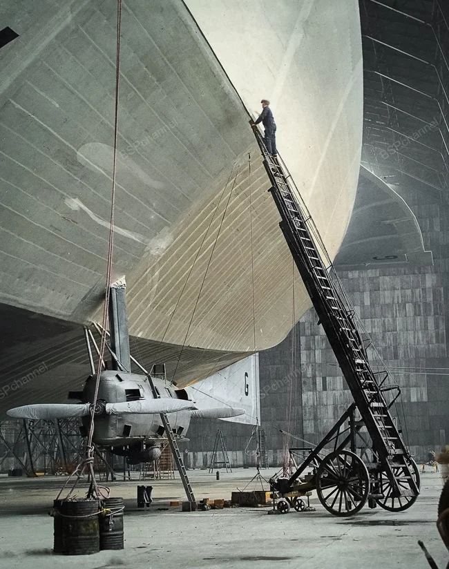 Британский дирижабль R100 близок к завершению на авиабазе Королевской военно-морской авиационной службы близ Хаудена в Йоркшире, ноябрь 1929 года.