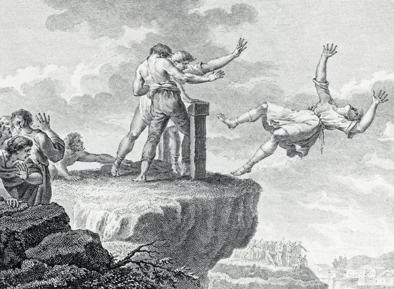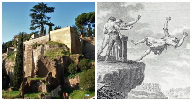 Для убийц и изменников существовал отдельный вид казни — их сбрасывали с высокого обрыва. Идеально для этого подходил утёс на южной вершине Капитолийского холма, возвышавшийся над Римским форумом. Этот утёс, названный Тарпейской скалой, носит имя печально известной предательницы, которая попыталась продать Рим своим врагам в обмен на золото, но была убита. Её звали Тарпея, и она была дочерью Спурия Тарпея, коменданта, отвечавшего за оборону Капитолия.