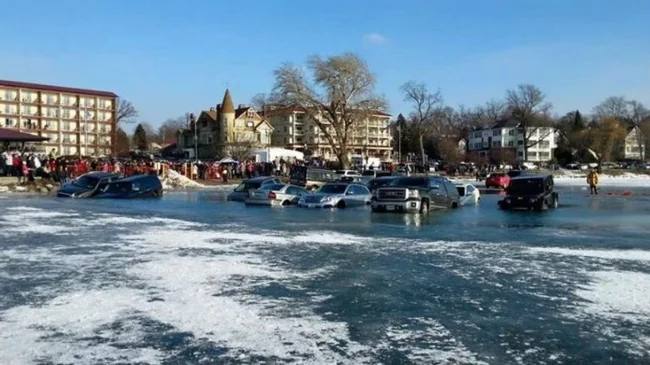 4. Решили припарковаться на замёрзшем озере в 7 градусов тепла