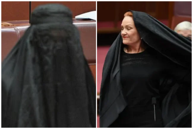 Австралийского сенатора выгнали с заседания из-за паранджи (3 фото + 1 видео)