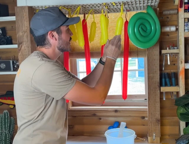 Коннор Крейтс рассказал и показал, как сделать необычную и интересную мебель из простых воздушных шариков. Материал, благодаря которому такое возможно — эпоксидная смола. Спустя восемь нанесённых слоёв смолы шарики стали будто бы пластиковыми и спокойно выдержали вес человека.
