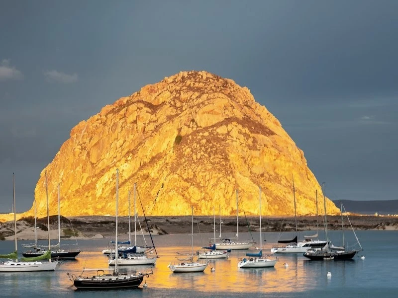 4. Остров Морро-Рок в Калифорнии на рассвете выглядит как гора золота
