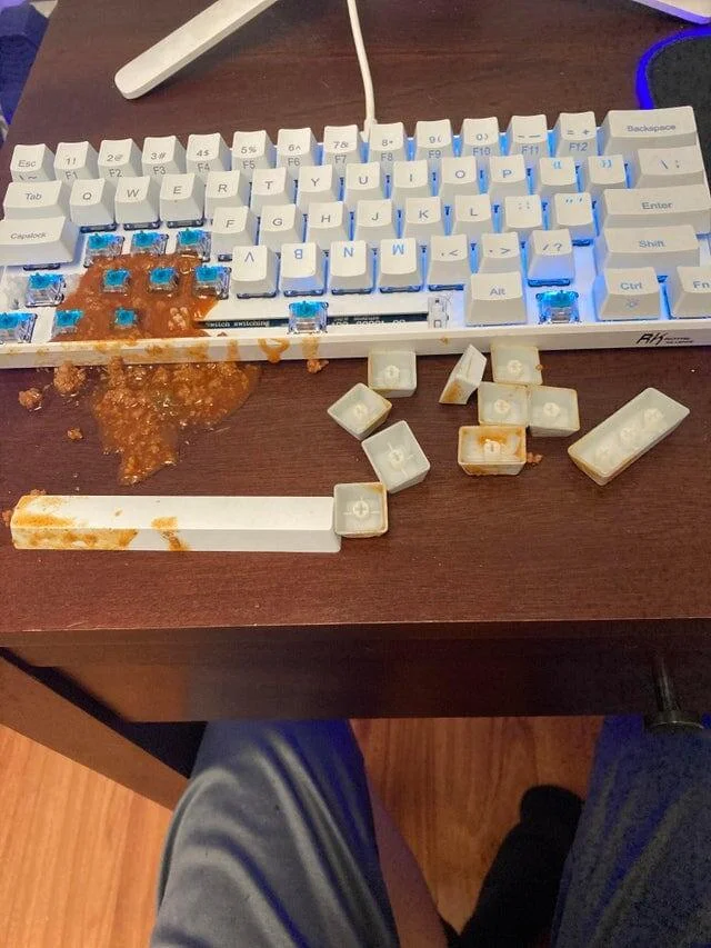 Сестра разлила чили на клавиатуру, которую я купил за 90 долларов на прошлой неделе