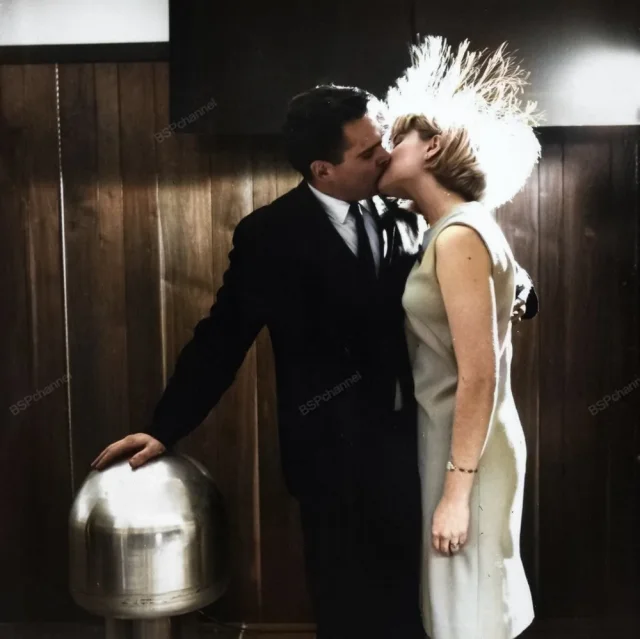 Американский ученый Джеймс Стаки и доброволец Джуди Криден демонстрируют способность человеческого организма функционировать в качестве проводника электрического тока во время лекции в Нью-Йорке организованной Комиссией по атомной энергии США, 1966 год.